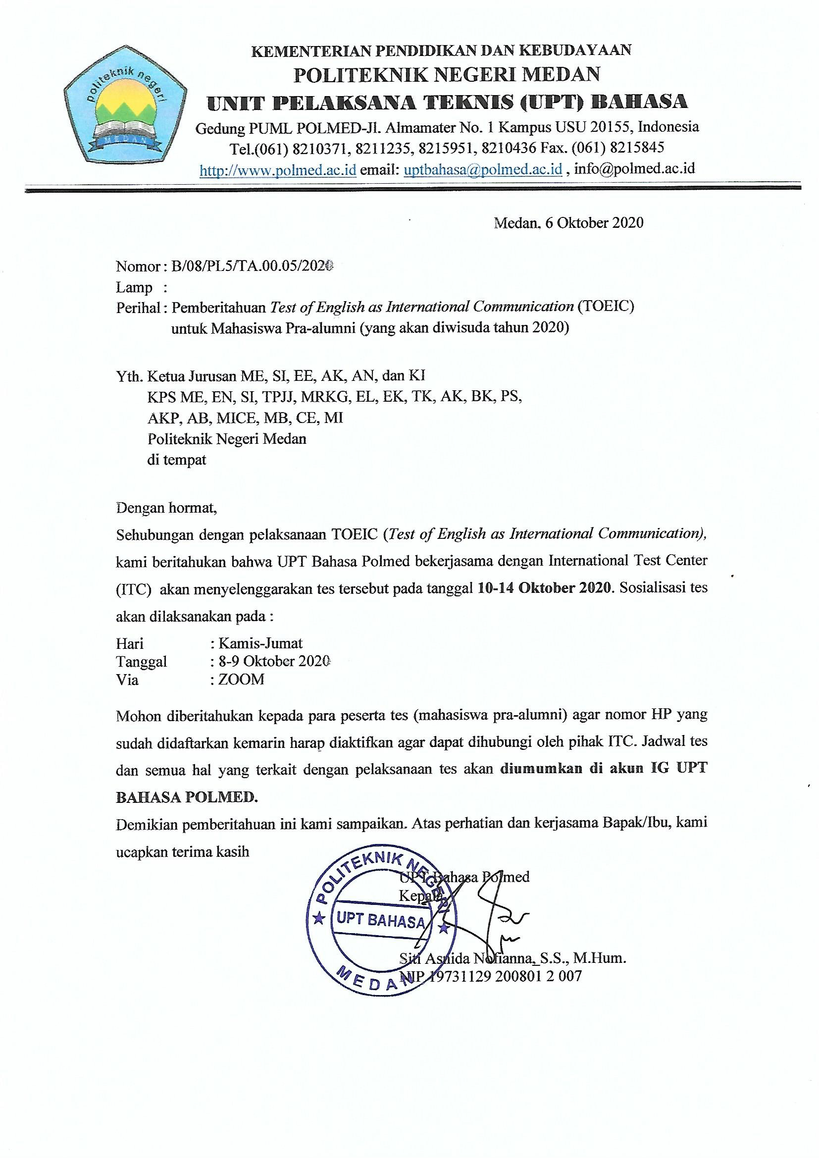 07 Okt, 20 By Admin Pengumuman Untuk melihat Daftar nama peserta silahkan kunjungi link di bawah ini : DAFTAR PESERTA TOEIC PRA ALUMNI 2020