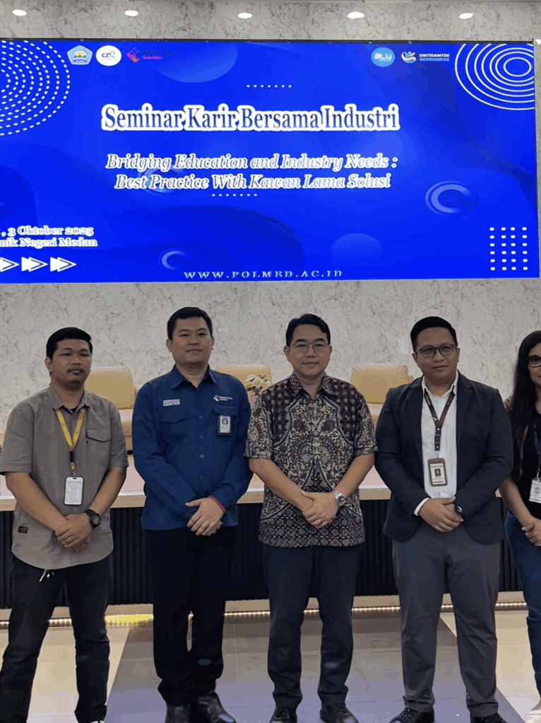 Politeknik Negeri Medan (Polmed) bersama Kawan Lama Group (KLG) menggelar Seminar Karir Bersama Industri bertajuk “Bridging Education and Industry Needs: Best Practice with Kawan Lama Solusi” di Aula Gedung Direktorat Polmed, Kamis (3/10). Kegiatan ini menjadi ruang pertemuan antara kampus dan dunia industri untuk memperkuat kesiapan mahasiswa sebelum terjun ke dunia kerja.