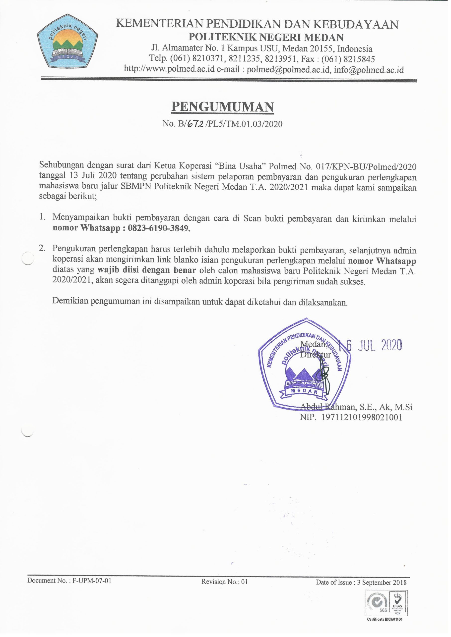 BERIKUT DAFTAR NAMA-NAMA PESERTA UKT JALUR SNMPN & PMP T.A 2020/2021