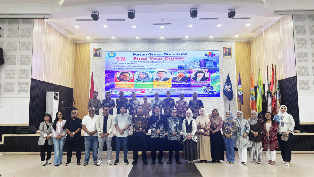 Politeknik Negeri Medan (Polmed) menggelar Forum Group Discussion (FGD) bertajuk “Final Year Career, Siap Lulus, Siap Kerja, Siap Bersaing” bagi mahasiswa tingkat akhir, Jumat (17/4), di Aula Gedung Direktorat.