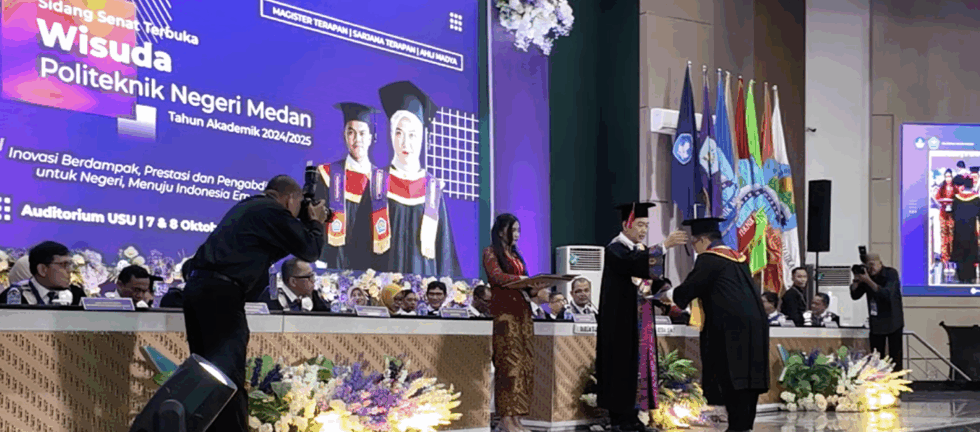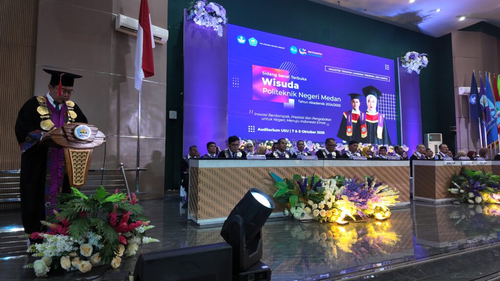 Politeknik Negeri Medan (Polmed) menggelar Wisuda Angkatan ke-40 yang berlangsung selama dua hari, 7–8 Oktober 2025, di Gedung Auditorium Universitas Sumatera Utara. Sebanyak 1.963 lulusan resmi dilepas dalam empat sesi wisuda yang berlangsung khidmat dan penuh makna.