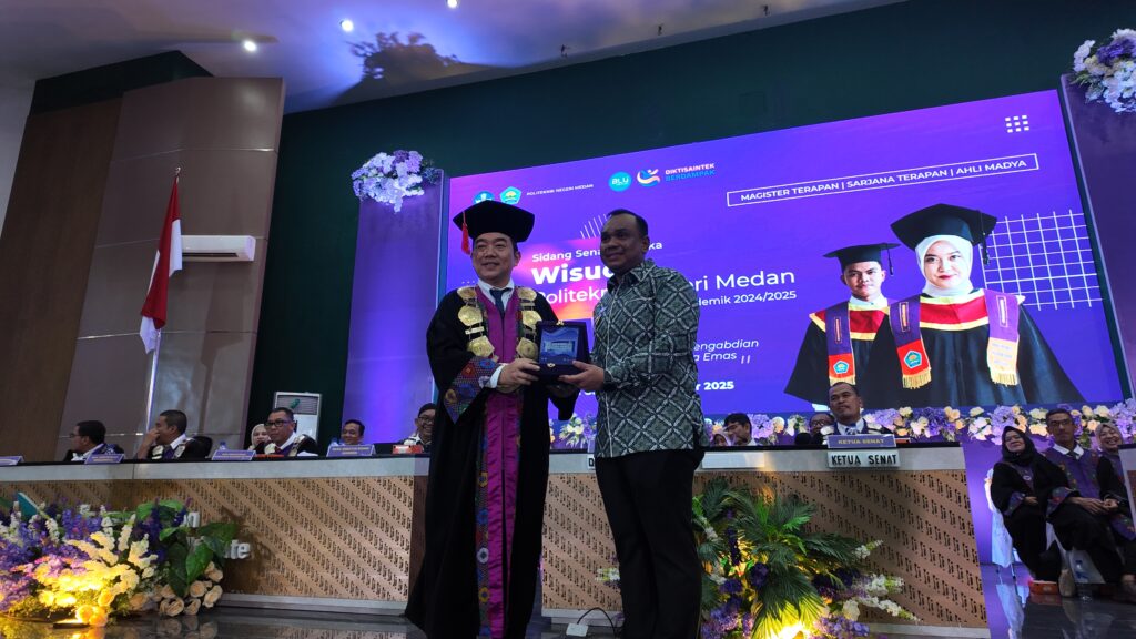 “Lulusan vokasi seperti Polmed memiliki posisi strategis karena langsung bersentuhan dengan kebutuhan industri. Jangan berhenti belajar. Dunia kerja menuntut kecepatan beradaptasi dan kemampuan memecahkan masalah nyata,” pesannya.