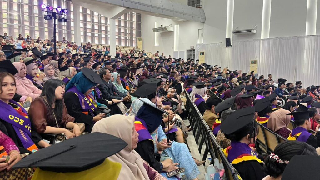 Suasana wisuda berlangsung penuh haru. Rasa bangga dan haru terpancar dari wajah para orang tua yang melihat anak-anaknya resmi menyandang gelar baru setelah menempuh perjalanan panjang di bangku kuliah.