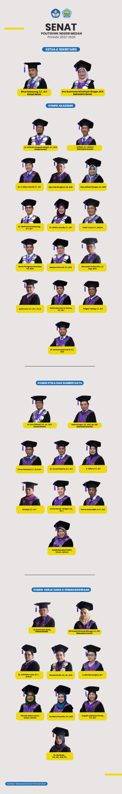 Merupakan lembaga perumus dan pemantau garis besar kebijaksanaan umum di dalam Politeknik adalah Senat seperti yang dimaksud di dalam Keputusan Menteri Pendidikan Nasional No. 130/O/2002 tentang Organisasi dan Tata Kerja Politeknik Negeri Medan. Senat terdiri dari wakil unsur lembaga dan kelompok dosen, dipimpin oleh seorang Ketua Senat dengan dibantu oleh seorang Sekretaris Senat.
