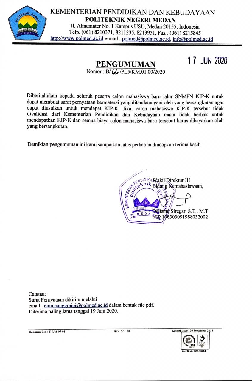 17 Jun, 20 By Admin Pengumuman Untuk Format Surat Pernyataan silahkan download link dibawah ini : Surat Pernyataan SNMPN KIP-K
